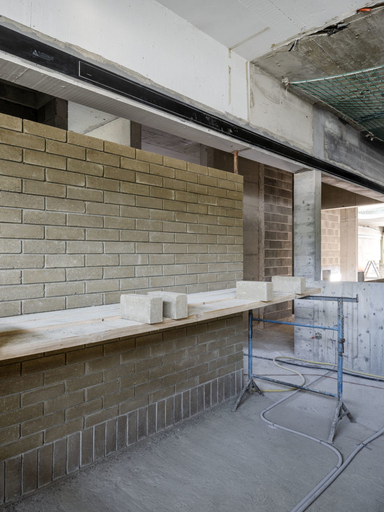 La structure légère du nouveau plancher intermédiaire est démontable pour permettre une future reconfiguration. Afin d’améliorer la protection thermique du bâtiment, les murs extérieurs en béton sont isolés avec du béton cellulaire, et les toitures sont végétalisées, avec rétention d’eau partielle et panneaux solaires placés verticalement pour un rendement optimisé. La nappe phréatique est utilisée pour le chauffage et le refroidissement.