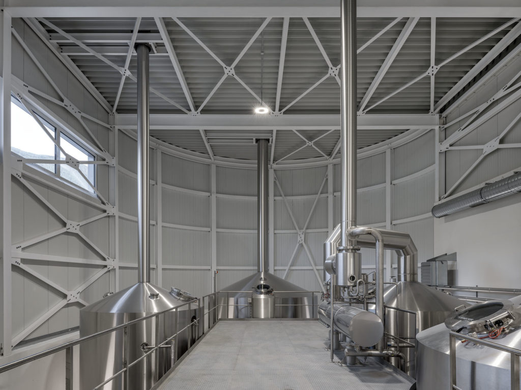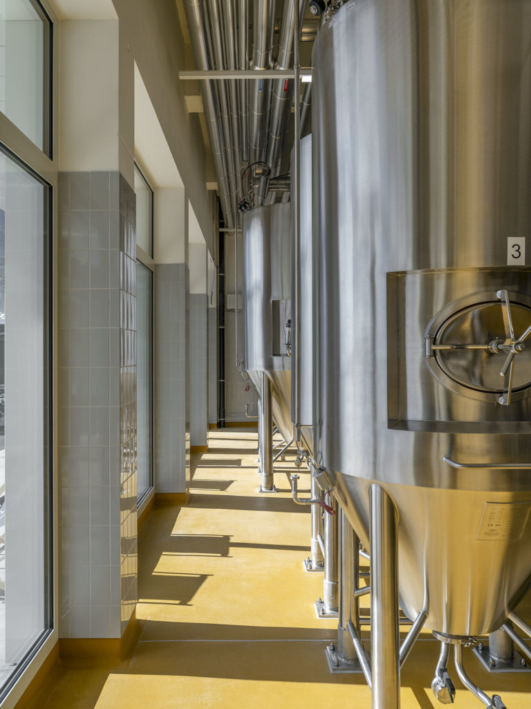 La philosophie de la Brasserie Valaisanne ‘avec passion et sans compromis’ se reflète dans sa nouvelle usine. L’architecture suit le processus de production de bière : les étapes de livraison et de production déterminent la répartition programmatique. Les hauteurs des différentes parties du bâtiment varient en fonction des équipements requis. Le bâtiment répond aux objectifs principaux du maître d’ouvrage, soit la valorisation de l’artisanat local et la mise en place d’un outil de travail ergonomique, hygiénique et sûr.